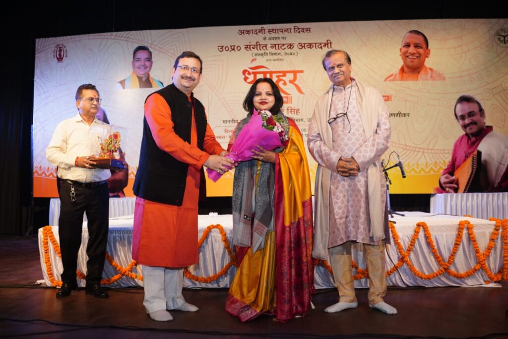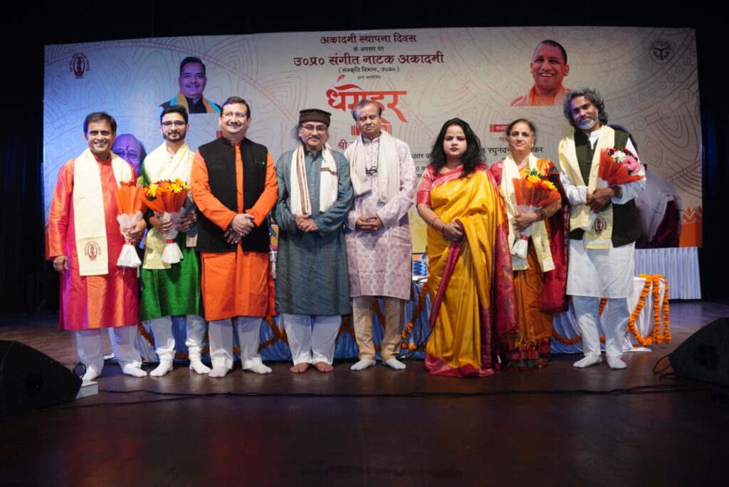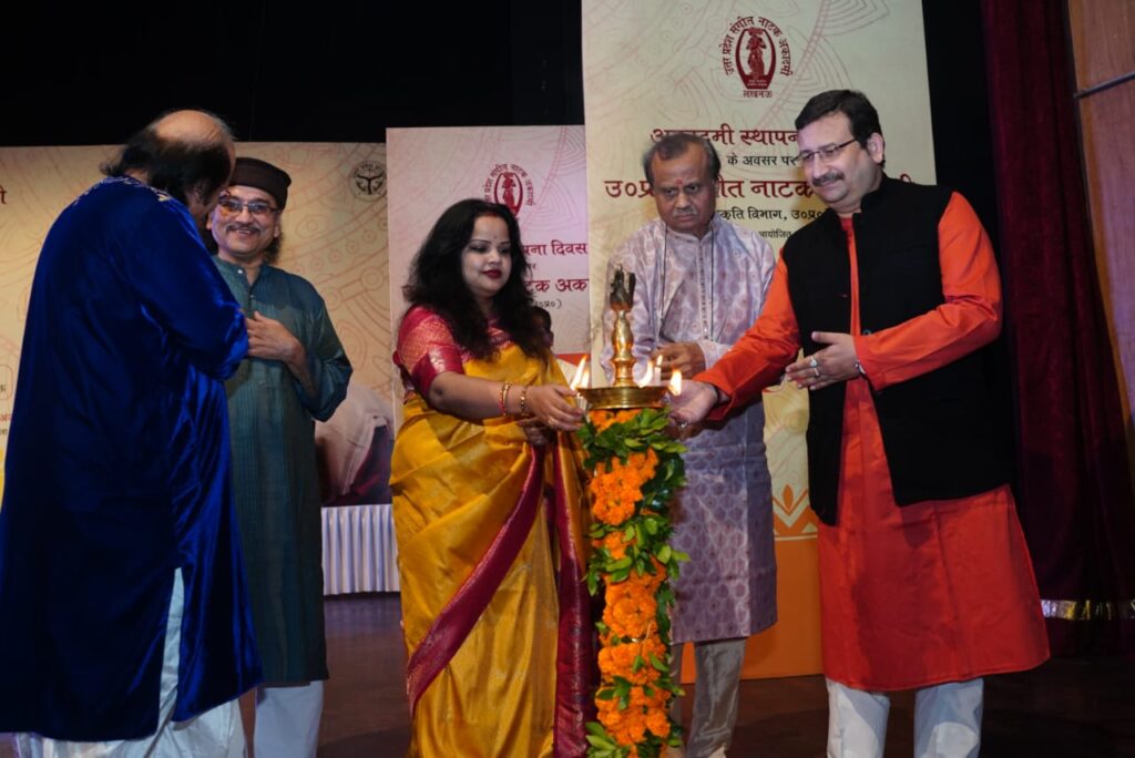 दैनिक इंडिया न्यूज़,लखनऊ, 14 नवम्बर। उत्तर प्रदेश संगीत नाटक अकादमी के स्थापना दिवस समारोह ‘धरोहर’ ने गुरुवार को संत गाडगे जी महाराज ऑडिटोरियम में शास्त्रीय संगीत की अद्भुत छटा बिखेर दी। समारोह का मुख्य आकर्षण रहे मुंबई के प्रतिष्ठित पद्मश्री रोनू मजूमदार का सुरमयी बांसुरी वादन और पुणे के विख्यात गायक पंडित रघुनंदन पणशीकर का मनोवेगपूर्ण गायन, जिनकी भावपूर्ण प्रस्तुतियों ने वातावरण को रस-मग्न कर दिया।