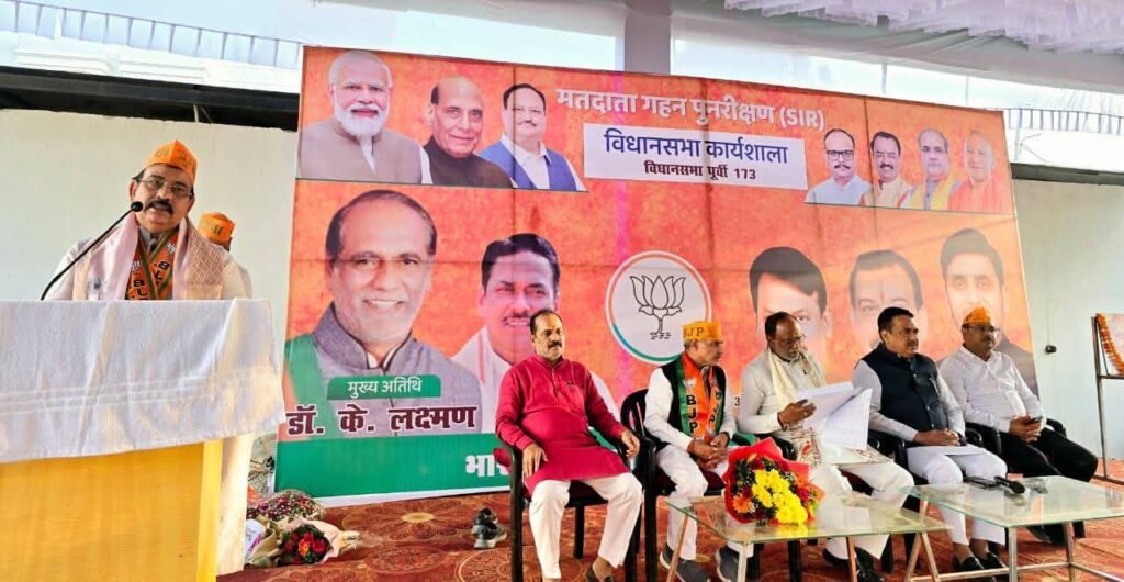 दैनिक इंडिया न्यूज़,लखनऊ। पूर्वी विधानसभा में मतदाता विशेष गहन पुनरीक्षण कार्यशाला का आयोजन महानगर स्थित गोल्डन सेलिब्रेशन में किया गया। इस अवसर पर मुख्य अतिथि के रूप में राष्ट्रीय ओबीसी मोर्चा के अध्यक्ष एवं राज्यसभा सांसद डॉ. के. लक्ष्मण, प्रदेश महामंत्री एवं विधान परिषद सदस्य गोविंद नारायण शुक्ला तथा भाजपा लखनऊ महानगर अध्यक्ष आनन्द द्विवेदी उपस्थित रहे।