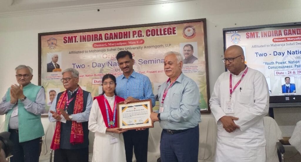 दैनिक इंडिया न्यूज़, मधुबन। ज्ञान, शोध और नवोन्मेष की अक्षुण्ण परंपरा से अनुप्राणित भारतभूमि एक बार पुनः वैचारिक उद्भास का साक्षी बनी, जब श्रीमती इंदिरा गांधी महाविद्यालय में “युवा शक्ति, राष्ट्र निर्माण और भारत बोध: कल, आज एवं कल” विषय पर द्विदिवसीय राष्ट्रीय संगोष्ठी का गरिमामय शुभारंभ हुआ। समग्र वातावरण वैदिक मंगलाचार, बौद्धिक ऊर्जा और राष्ट्रीय चेतना के अद्भुत समन्वय से आलोकित प्रतीत हो रहा था। कार्यक्रम का प्रारंभ माँ सरस्वती के समक्ष दीप प्रज्वलन के साथ हुआ, जिसने समूचे आयोजन को आध्यात्मिक ऊष्मा और सांस्कृतिक गरिमा प्रदान की।