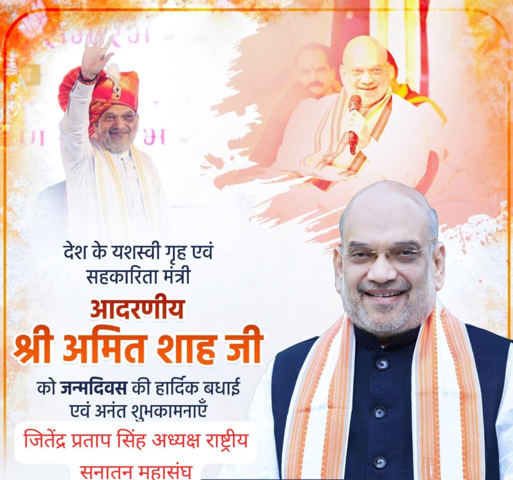 राष्ट्रीय सनातन महासंघ के राष्ट्रीय अध्यक्ष श्री जितेंद्र प्रताप सिंह ने भारत सरकार के गृह एवं सहकारिता मंत्री श्री अमित शाह के जन्मदिन पर उन्हें हार्दिक बधाई एवं शुभकामनाएं ज्ञापित की हैं। इस अवसर पर उन्होंने कहा कि श्री अमित शाह भारतीय राजनीति के उन विरले नेताओं में से हैं, जिन्होंने अपने संगठनात्मक कौशल, राष्ट्रनिष्ठा और दूरदर्शी नेतृत्व से देश के प्रशासनिक तंत्र को सशक्त दिशा प्रदान की है।