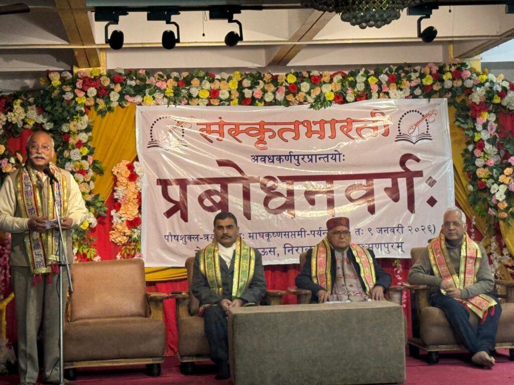 दैनिक इंडिया न्यूज़, लखनऊ।संस्कृतभारती द्वारा आयोजित अवधप्रांत एवं कर्णपुर प्रांत के नौ दिवसीय संयुक्त प्रबोधन वर्ग का भव्य उद्घाटन 1 जनवरी को जे.सी. गेस्टहाउस, निरालानगर, लखनऊ में अत्यंत गरिमामय वातावरण में सम्पन्न हुआ। इस प्रबोधन वर्ग का शुभारंभ अखिल भारतीय प्रचारक प्रमुख, राष्ट्रीय स्वयंसेवक संघ, श्री स्वांतरंजन के करकमलों द्वारा दीप प्रज्वलन के साथ हुआ। उद्घाटन सत्र में मुख्य अतिथि के रूप में श्री स्वांतरंजन के साथ जितेन्द्र प्रताप सिंह (सम्पर्क प्रमुख, पूर्व क्षेत्र), चन्द्र भूषण त्रिपाठी (अध्यक्ष, अवधप्रांत) तथा धर्मेन्द्र सिंह तोमर (वर्गाधिकारी) की गरिमामयी उपस्थिति ने कार्यक्रम को विशेष वैचारिक ऊँचाई प्रदान की। यह नौ दिवसीय प्रबोधन वर्ग 1 जनवरी से प्रारंभ होकर 9 जनवरी तक संचालित होगा।