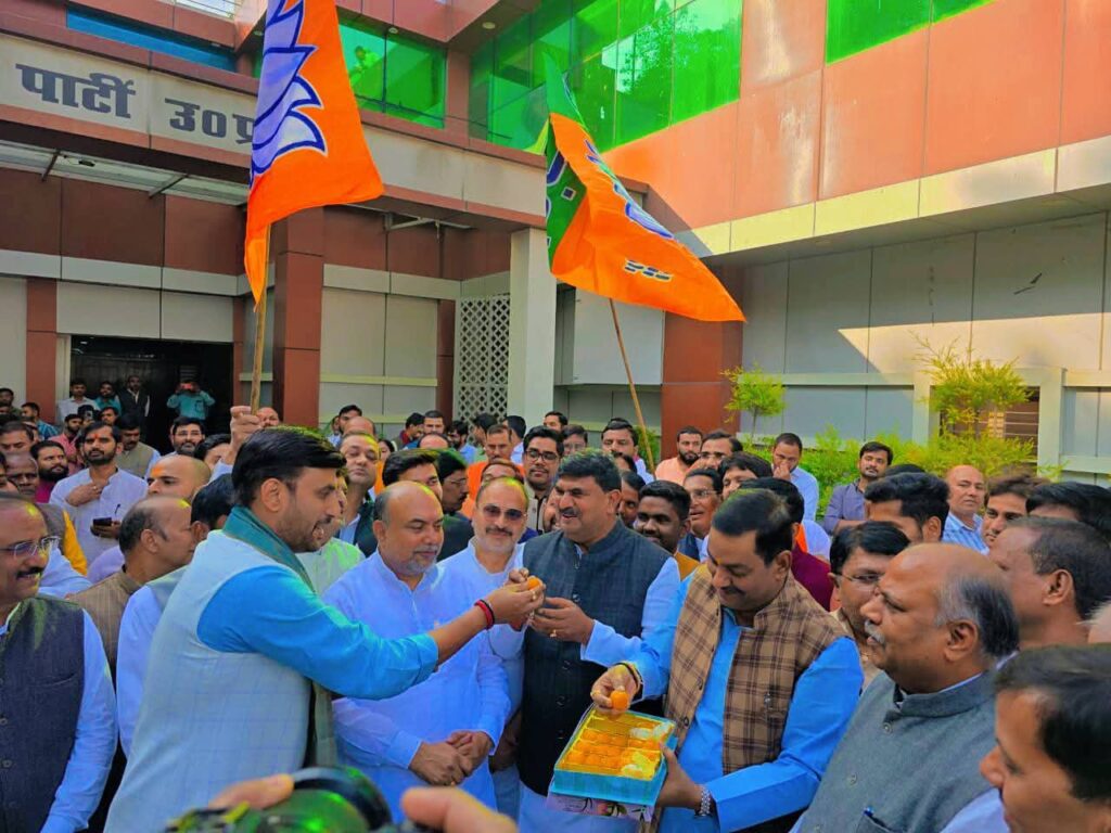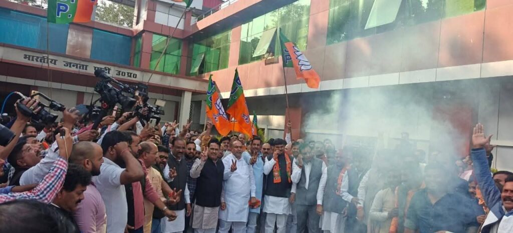 बिहार चुनाव में एनडीए की ऐतिहासिक जीत पर भाजपा प्रदेश कार्यालय में उत्सव