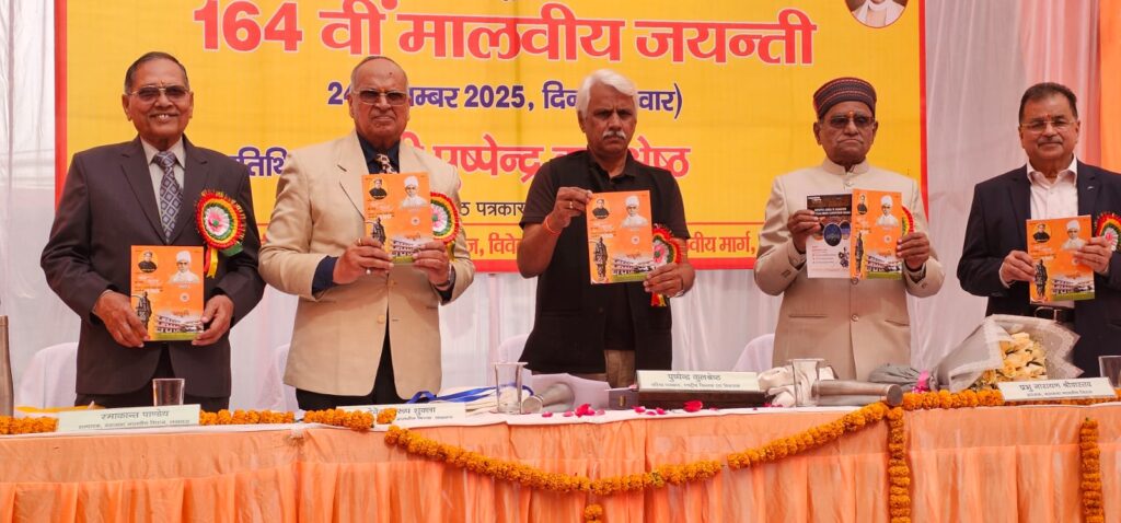 समारोह की अध्यक्षता महामना मालवीय मिशन, नई दिल्ली के संरक्षक श्री प्रभु नारायण श्रीवास्तव ने की। अपने अध्यक्षीय संबोधन में उन्होंने कहा कि महामना मालवीय जी हिंदू समाज के अजातशत्रु थे, जिनका संपूर्ण जीवन राष्ट्र, समाज और शिक्षा के लिए समर्पित रहा। उन्होंने कहा कि महामना जैसा व्यक्तित्व न केवल भारत, बल्कि पूरे विश्व में दुर्लभ है।