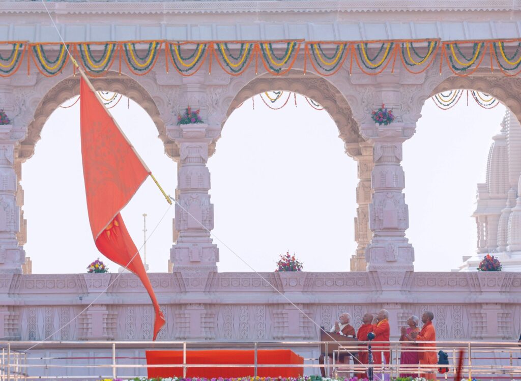 जब मंदिर के शिखर पर भगवा ध्वज आरोहित हुआ, तो ऐसा लगा कि यह ध्वज केवल मंदिर का नहीं, बल्कि संपूर्ण राष्ट्र के आत्म-सम्मान, सांस्कृतिक चेतना और शाश्वत गौरव का प्रतिरूप बनकर आकाश में लहराने लगा है। उस क्षण में हर भारतीय हृदय गर्व, कृतज्ञता और अदम्य संकल्प से परिपूर्ण था। यह दृश्य किसी एक पीढ़ी का नहीं—यह असंख्य पीढ़ियों की प्रतीक्षा का चरमोत्कर्ष था।