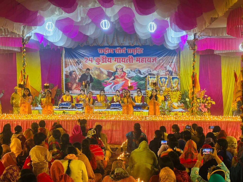 संध्या में मातृशक्ति के नेतृत्व में घर-घर से संकलित पाँच-पाँच दीपों से 24,000 दीपों का भव्य दीप-महायज्ञ सम्पन्न हुआ। जब हजारों दीपों की रौशनी एक साथ आकाश की ओर उठी और गायत्री महामंत्र की गूँज वातावरण में प्रतिध्वनित हुई, तब ऐसा लगा मानो अंधकार की हर परत प्रकाश के आगे स्वयं समर्पित हो रही हो। यह दीप-समुद्र केवल दृश्य कौतुक नहीं था, बल्कि अज्ञान, अवसाद, अहंकार और तमस के विनाश का सामूहिक संकल्प था, जिसे मातृशक्ति ने अपने तेज, करुणा और सामर्थ्य से सुदृढ़ बनाया।