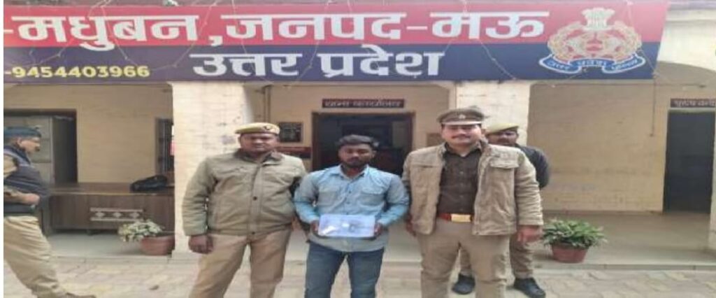 दैनिक इंडिया न्यूज, मऊ।मधुबन थाना क्षेत्र के हृदय पट्टी गांव के बाहर पुलिया के पास से सोमवार देर रात पुलिस ने मुखबिर की सूचना पर एक युवक को अवैध तमंचा और कारतूस के साथ गिरफ्तार कर लिया। पकड़े गए आरोपी ने अपना नाम शैल कुमार, पुत्र स्वर्गीय रामभवन, निवासी हृदय पट्टी बताया।