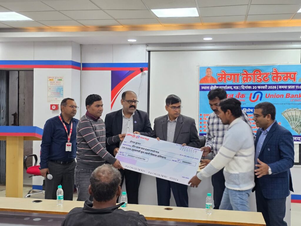 दैनिक इंडिया न्यूज़ , मऊ। जनपद के आर्थिक सशक्तिकरण और युवाओं को स्वरोजगार से जोड़ने के उद्देश्य से यूनियन बैंक ऑफ इंडिया, क्षेत्रीय कार्यालय मऊ के तत्वावधान में मेगा क्रेडिट कैंप का भव्य आयोजन किया गया। कार्यक्रम के माध्यम से विभिन्न जन-कल्याणकारी योजनाओं के अंतर्गत पात्र लाभार्थियों को ऋण स्वीकृति एवं वितरण पत्र प्रदान किए गए।